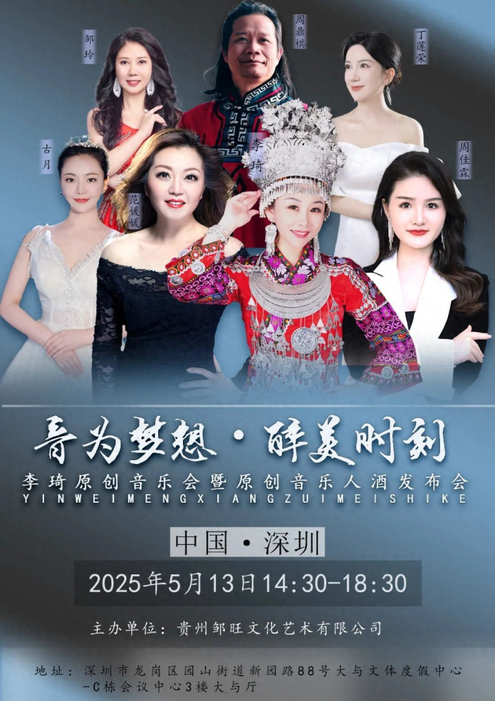 由贵州邹旺文化艺术有限公司主办的"音为梦想·醉美时刻"李琦原创音乐会将于2025年5月13日在深圳大与文体度假中心隆重启幕。这场历时四小时的音乐盛宴,将集中展现华语乐坛新生代领军人物李琦十余年创作积淀,为粤港澳大湾区乐迷带来一场融合家国情怀与艺术创新的视听享受。